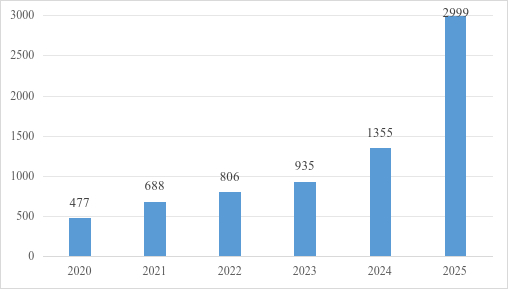 2025年境内ETF市场延续强劲增长态势,年内先后突破4万亿、5万亿、6万亿,成为亚洲第一大ETF市场。截至2025年底,境内交易所挂牌上市的ETF产品数量达1381只,较2024年底增长35.7%;总规模达6.02万亿元,较2024年底增长61.4%。其中,股票ETF规模3.83万亿元,跨境ETF规模9374亿元,债券ETF规模8281亿元,商品ETF规模2501亿元,货币ETF规模1741亿元。