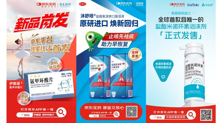 今年京东双11期间,众多新药选择在京东健康全网首发,包括法国欧彼乐(Opella)集团旗下原研进口祛痰药沐舒坦®、科笛集团创新痤疮治疗产品安佐清®、重庆药友制药止血用药氨甲环酸片伊馥凝®、以及科赴中国旗下新药泰诺®酮洛芬凝胶等。