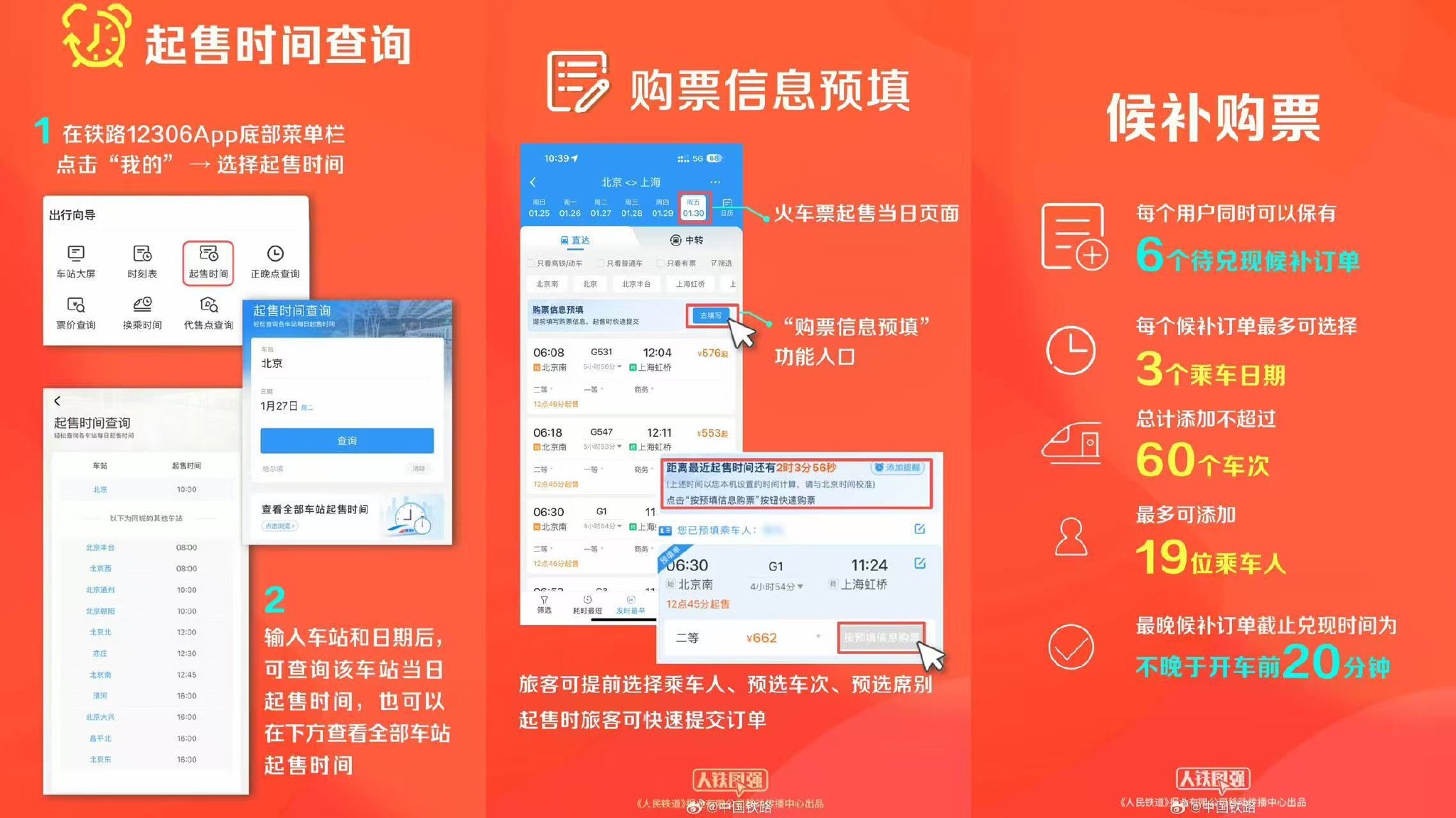 • 2月1日:开售春节假期首日(2月15日)火车票