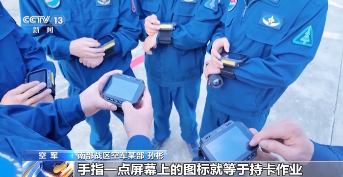 南部战区空军某部 孙彬:以前持卡操作,大家得准备不少卡片,保障时得一张张拿着签字,退场后再汇总、梳理、分析、总结。如今,这几步全省了。只需手指一点屏幕上的图标,就等于持卡作业,而且手环还能同步采集检查结果、日常工时、故障数据等维修过程信息,自动生成工卡检查结果单,并指出保障人员工作中的薄弱环节。