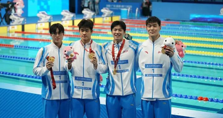 男子4×100米自由泳接力决赛,潘展乐、汪顺领衔的浙江队夺得冠军。