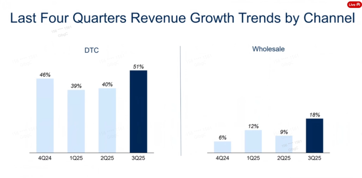 渠道方面,DTC 渠道营收同比增长46%,全渠道(Omnicom)增速从第二季度的15%回升至27%;批发渠道增长11%。截至第三季度末,亚玛芬体育自有门店总数达到631家,同比增长39%。