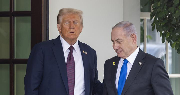 2025年9月29日,美国华盛顿,美国总统特朗普(左)在白宫欢迎以色列总理内塔尼亚胡(右)。视觉中国 资料图