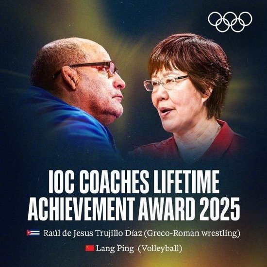 中国排球教练郎平与古巴摔跤教练劳尔·德·赫苏斯·特鲁希略·迪亚斯共同领取了国际奥委会颁发的教练终身成就奖。该奖项由国际奥委会主席克里斯蒂·考文垂和国际奥委会运动员随行人员委员会主席谢尔盖·布勃卡共同颁发。