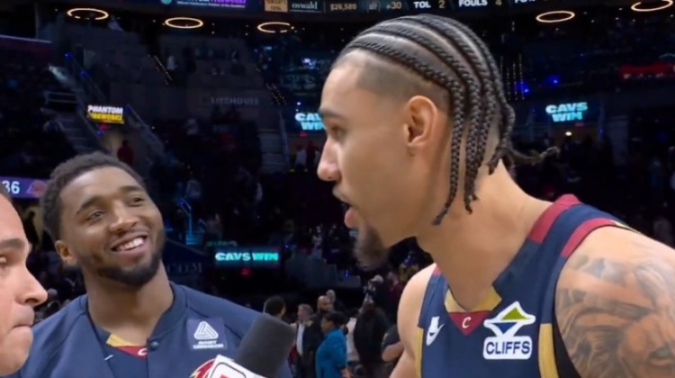 直播吧1月31日讯 昨天骑士主场以129-99大胜湖人赛后,在场边采访环节,泰森打断记者对米切尔的采访,针对关于詹姆斯的提问表示,“这里现在是米切尔的城市”。